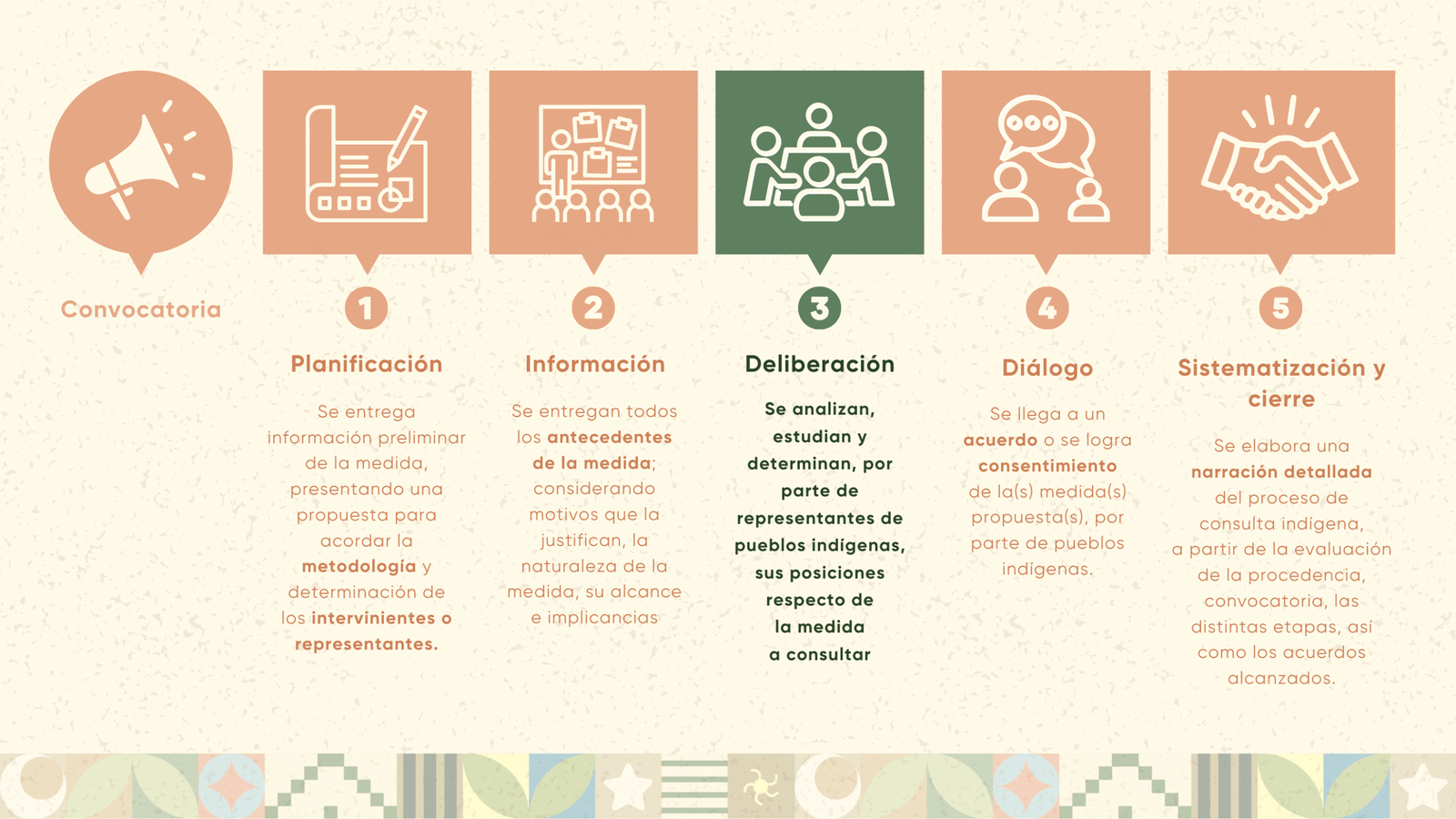 Actualmente nos encontramos en la ETAPA 3. DELIBERACIÓN INTERNA, en la cual los representantes de los pueblos indígenas analizan y determinan posiciones respecto de la medida a consultar.